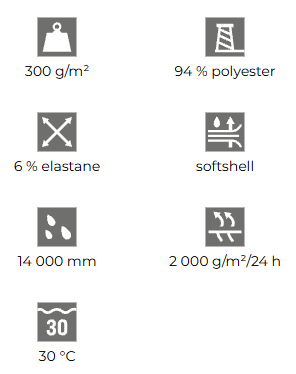 • waterproof 14 000 mm, breathable 2 000 g/m²/24h