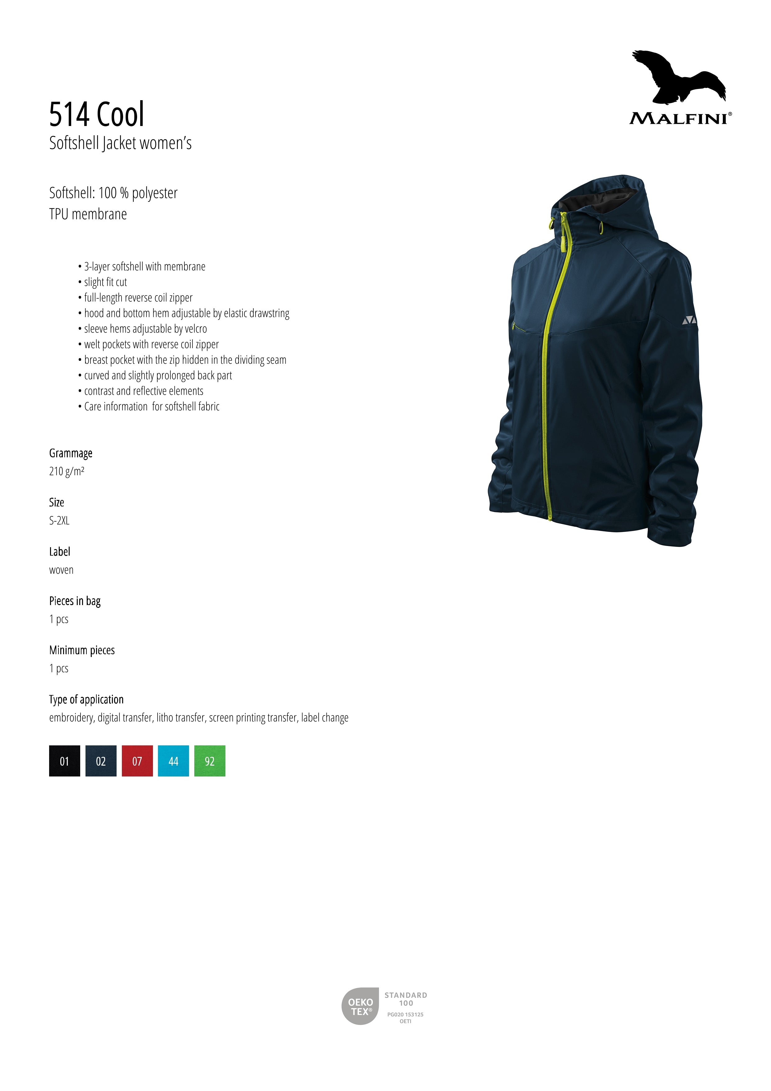 • Softshell: 100 % polyester