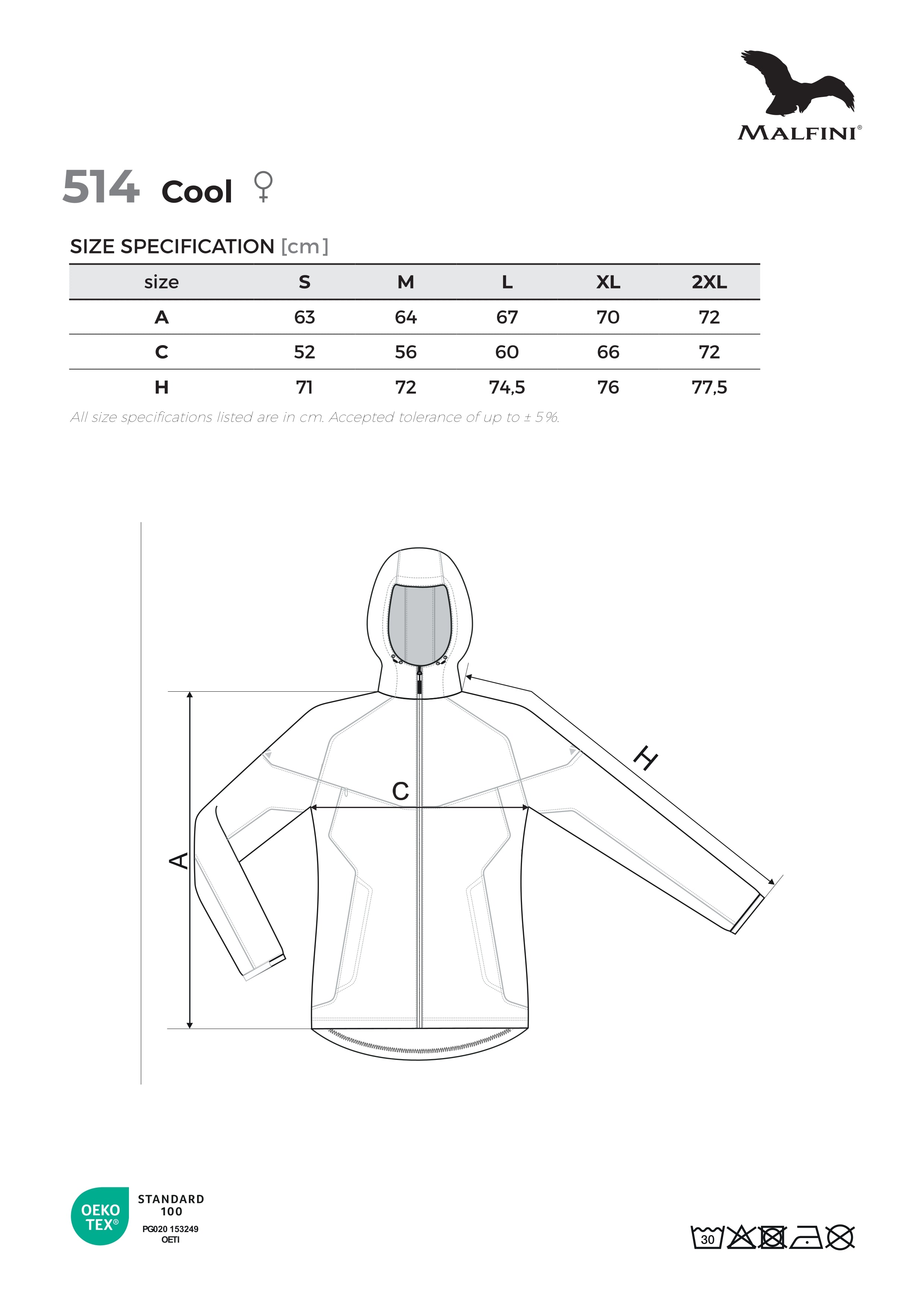 • hood and bottom hem adjustable by elastic drawstring