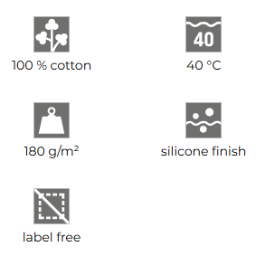• 100 % cotton, (composition of colour 12 may differ – 85 % cotton, 15 % viscose), silicone finish