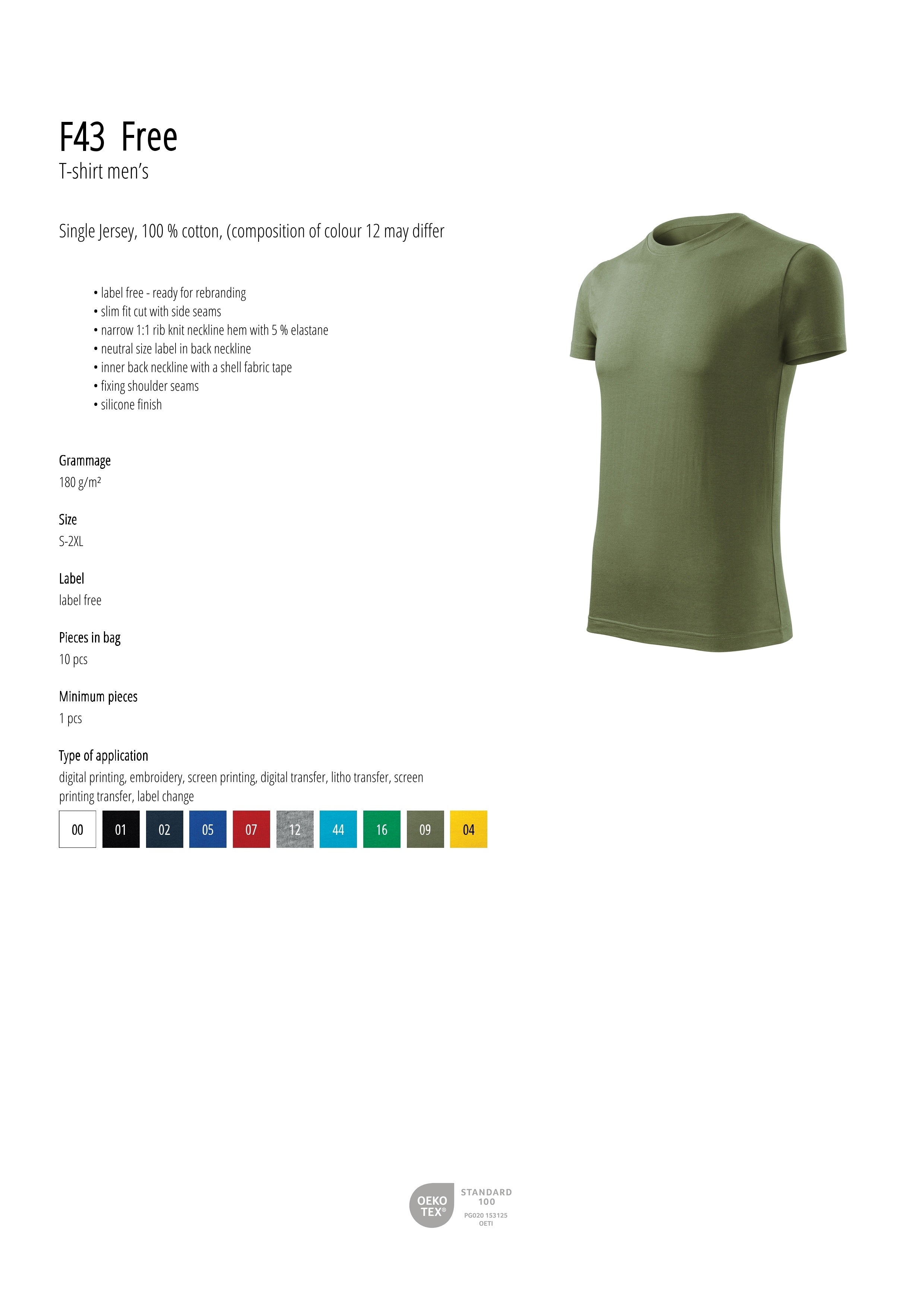• Type of application: digital printing, embroidery, screen printing, digital transfer, litho transfer, screen printing transfer, label change