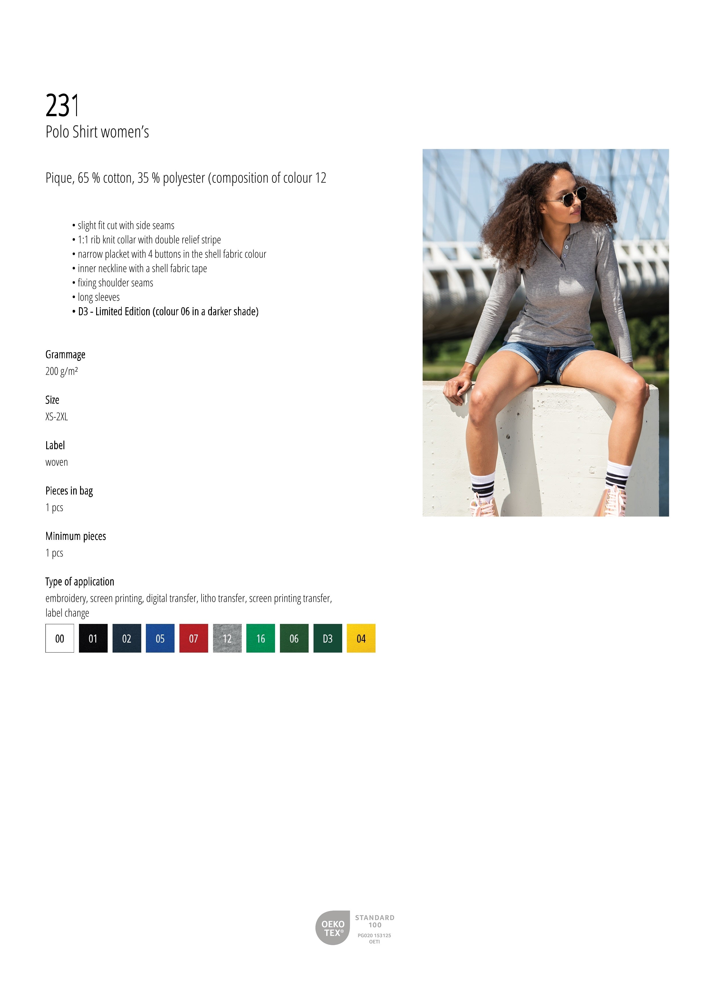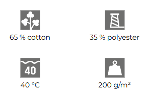 - 65 % cotton, 35 % polyester (composition of colour 12 may differ – 85 % cotton, 15 % viscose)
