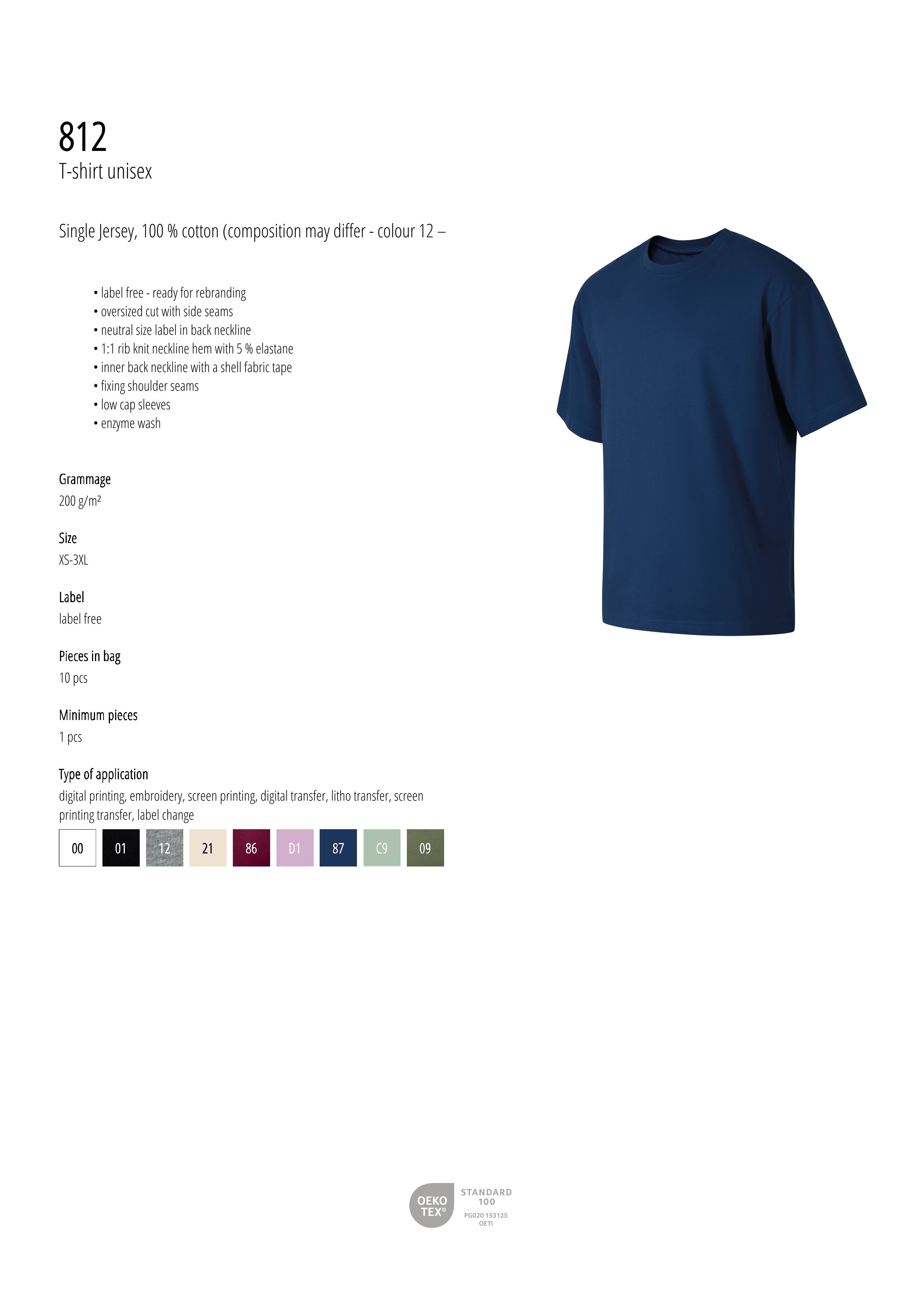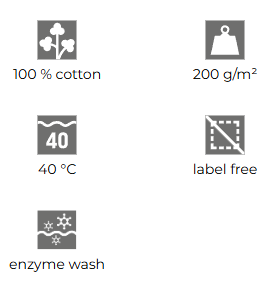 • 100 % cotton (composition may differ - colour 12 – 85 % cotton, 15 % viscose), enzyme wash
