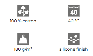 - 100 % cotton (composition may differ - colour 03 - 97 % cotton, 3 % viscose, colour 12 – 85 % cotton, 15 % viscose), silicone finish