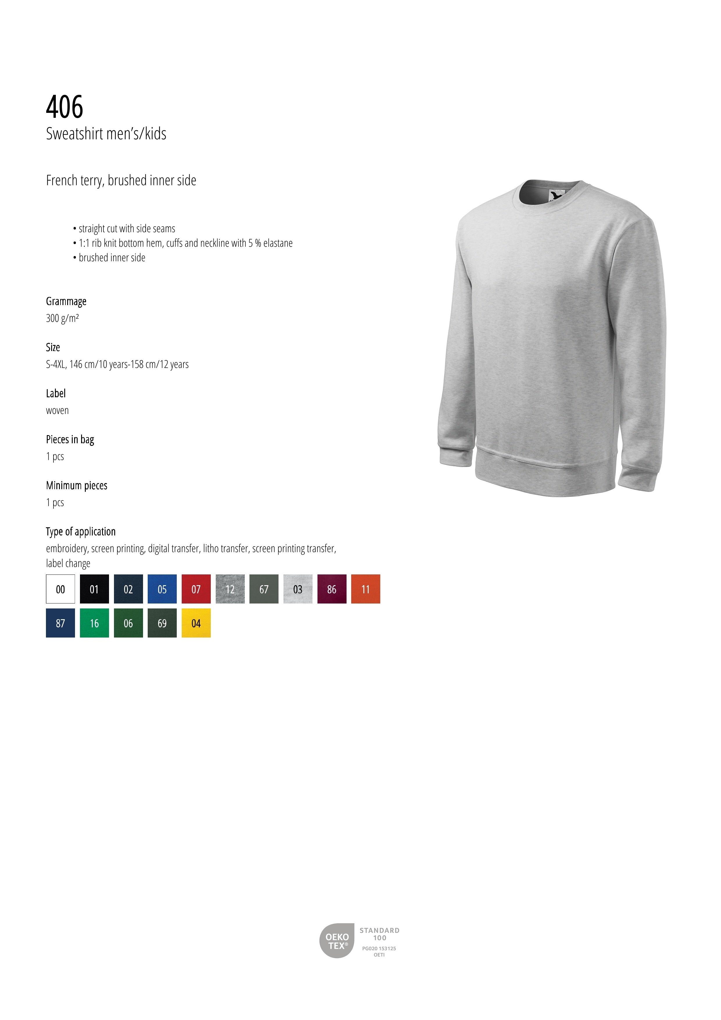 - 1:1 rib knit bottom hem, cuffs and neckline with 5 % elastane