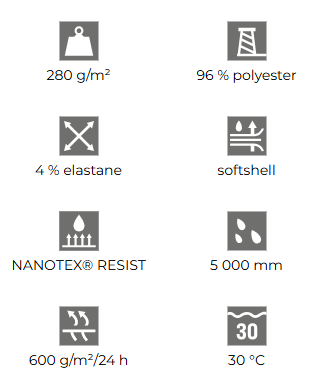 • 3-layer softshell with membrane